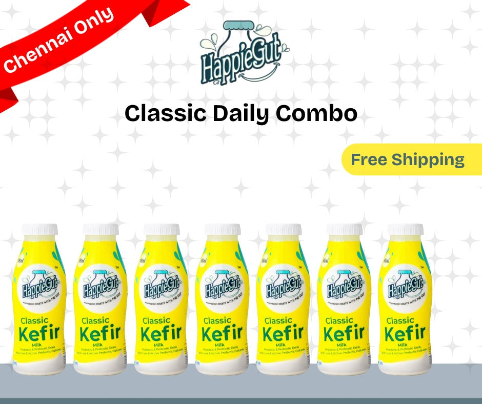 Kefir is a naturally fermented milk beverage enriched with 30+ powerful live probiotic strains that support gut health, digestion, immunity, skin glow, and mental well-being. It is light, slightly tangy, naturally fizzy, rich in protein and calcium, and easier to digest due to its low lactose content.