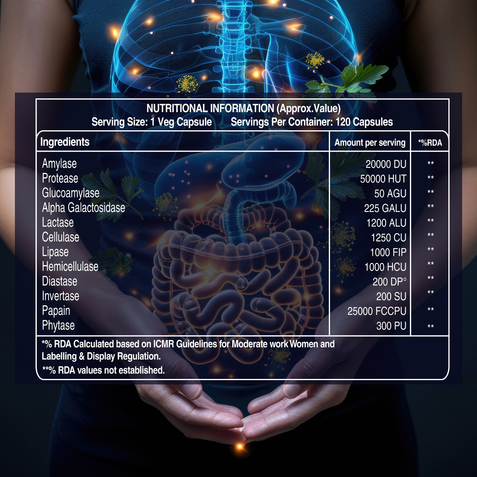 4) Designed for individuals who want to complement their meals with digestive enzymes as part of a balanced diet and daily wellness routine.*